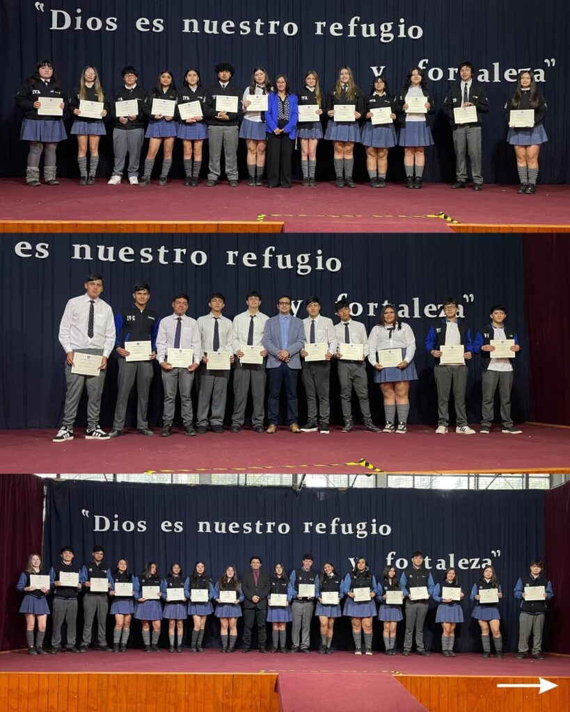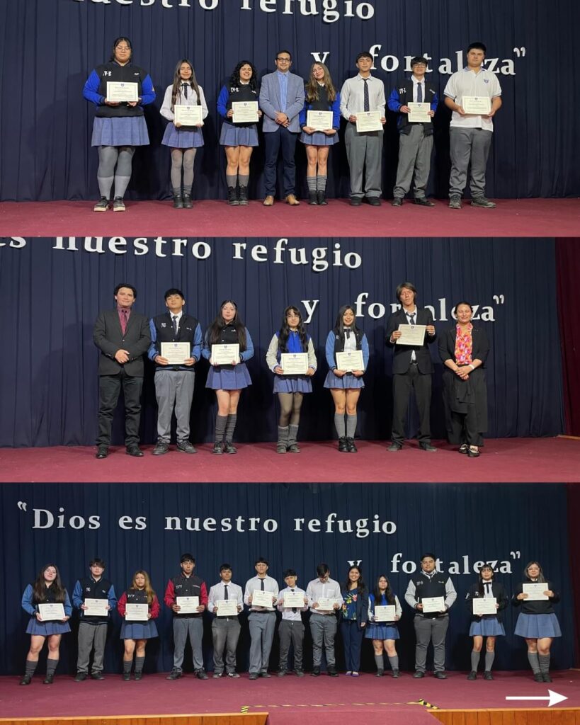 En la instancia, se entregaron diversos reconocimientos a aquellos alumnos que destacaron por su compromiso, constancia y talento en diferentes áreas. Entre ellos, el “Premio a la Trayectoria” para quienes han permanecido en el colegio desde Kínder, menciones por colaboración con el colegio, talentos deportivos, primer lugar en robótica por equipos en torneo Duoc UC, además de distinciones en el área pastoral y cultural, como concursos literarios, de cueca y Olimpiadas de Administración. También se premió a los estudiantes que lograron un 100% de asistencia durante el año.