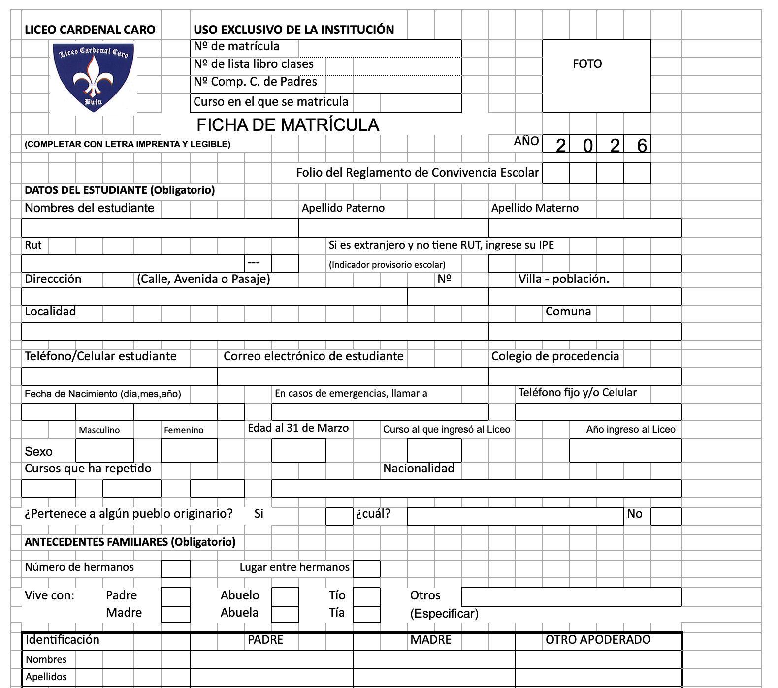 Ficha de matrĆcula (descarga formato Excel)