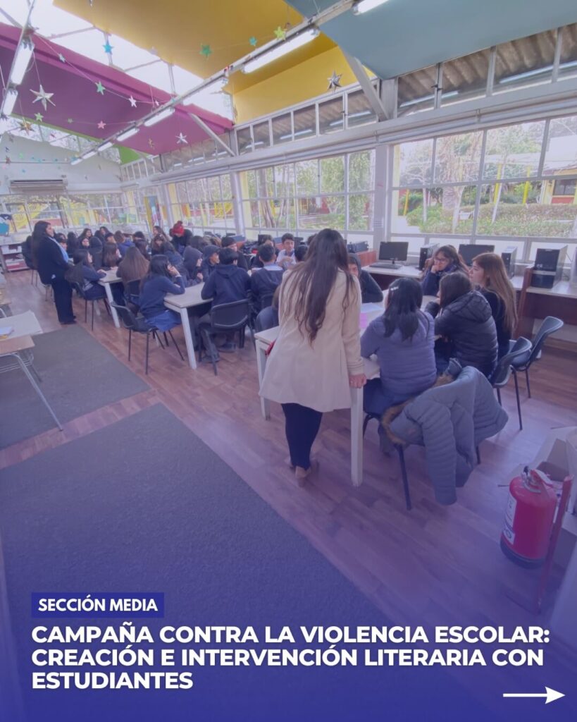 Durante agosto, estudiantes de Tercero Medio, del taller de Literatura, guiados por la profesora Stephanie Pereira, han estado trabajando en la creación de libros didácticos con lecturas y actividades relacionadas a la problemática del bullying, con el objetivo de prevenir y erradicar el acoso escolar, en todas sus formas, ya sea verbal, escrita, física, psicológica y/o digital.