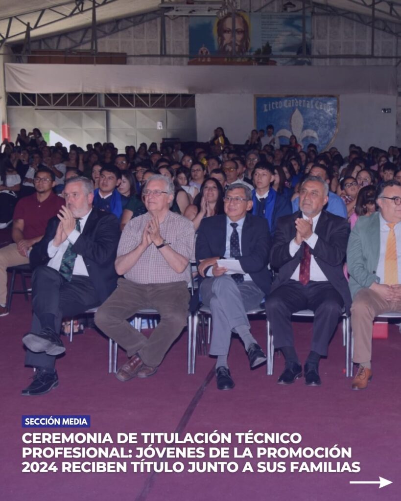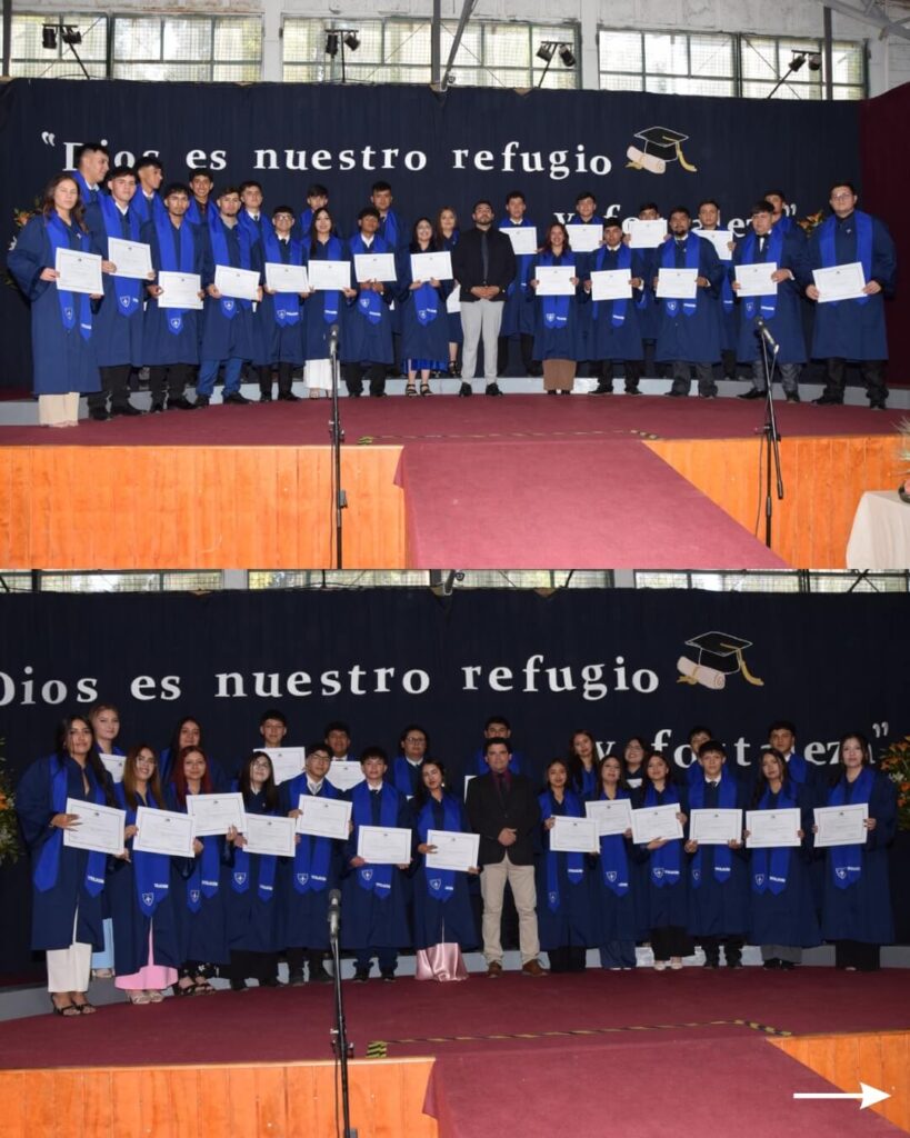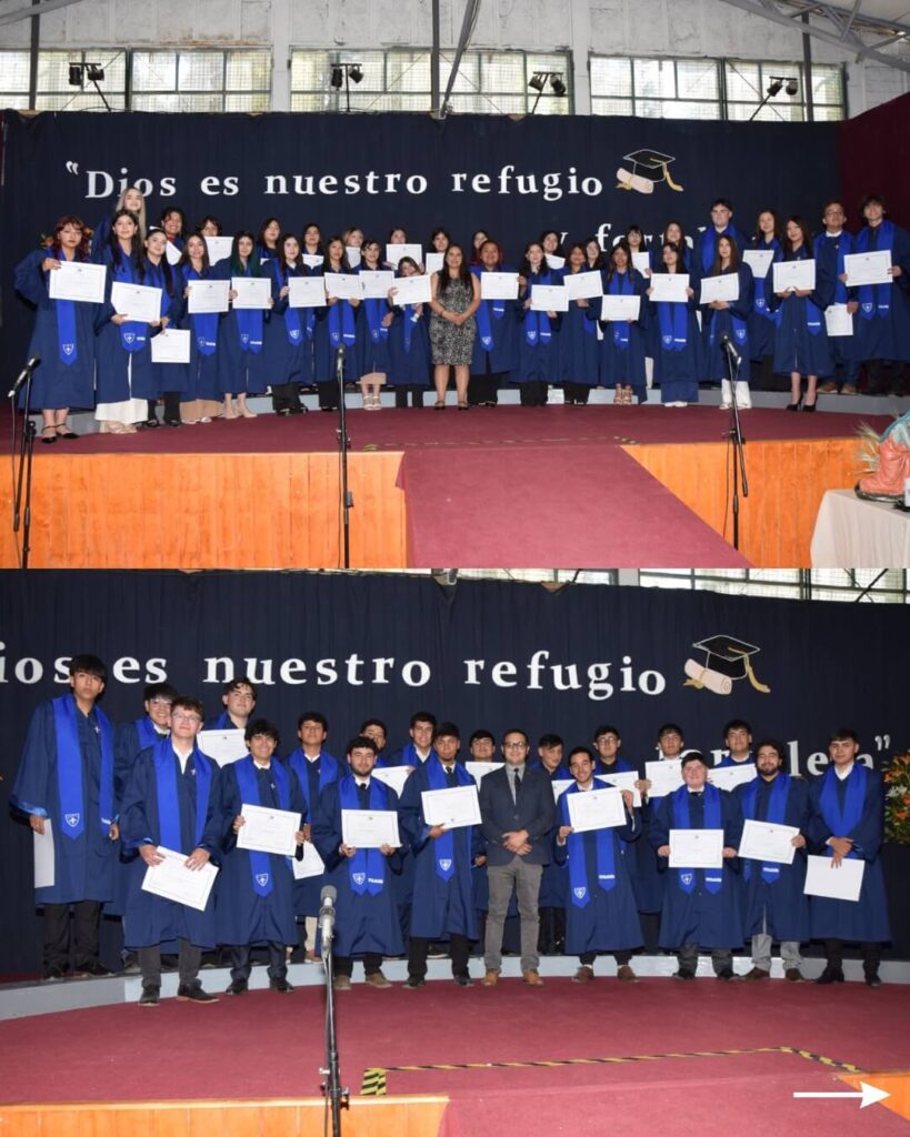 El lunes 22 de diciembre, en una significativa jornada, se realizó la ceremonia de Titulación Técnico Profesional de la Promoción 2024 de nuestro colegio, para aquellos estudiantes que cumplieron con el proceso de su práctica profesional, en las especialidades de Administración – mención Logística, Gastronomía – mención Cocina, Electricidad y Mecánica Automotriz. Recibiendo, de esta manera, el título que acredita el cúlmine de su etapa educativa TP.