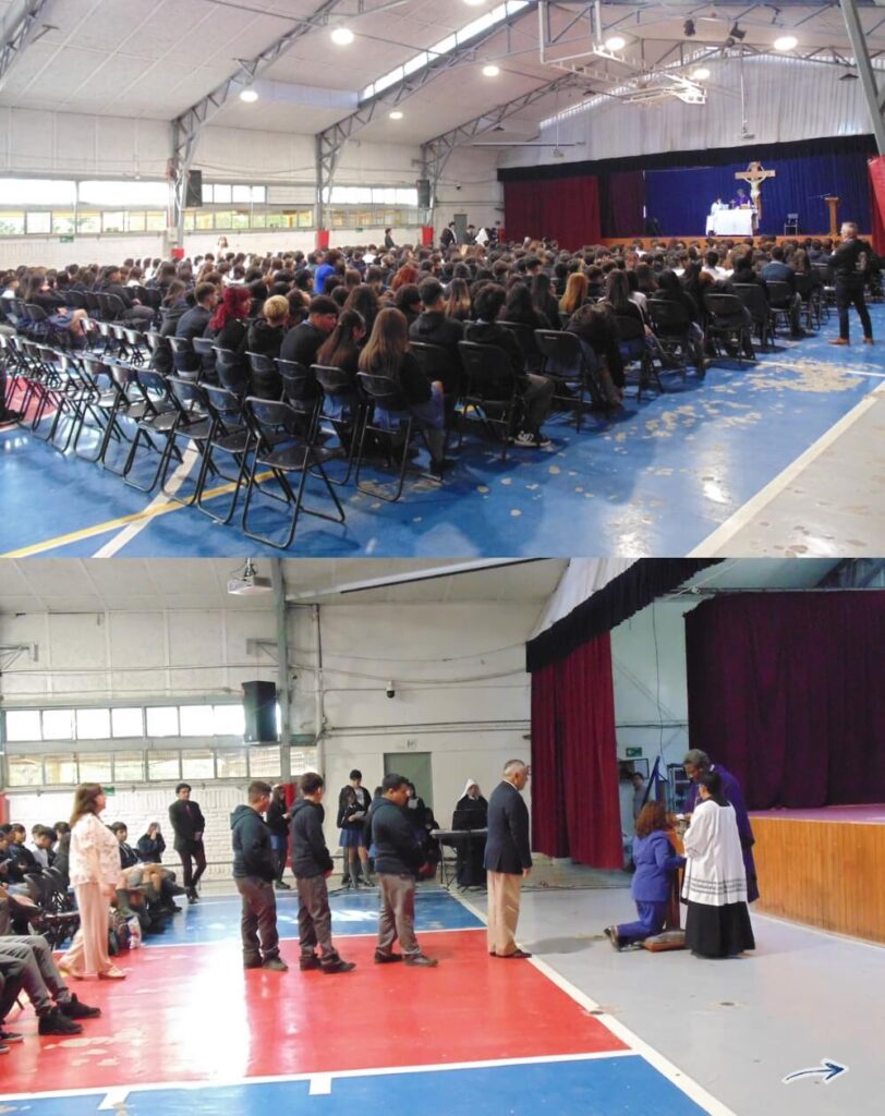 Además, se han depositado hostias consagradas en el Sagrario de nuestra Capilla, signo de la presencia viva de Jesús en medio de nuestra comunidad educativa. Él nos espera a todos, directivos, administrativos, docentes, asistentes de la educación y especialmente a nuestros estudiantes, para recordar que en el Divino Corazón de Jesús encontramos perdón, consuelo y la fuente de todo amor.