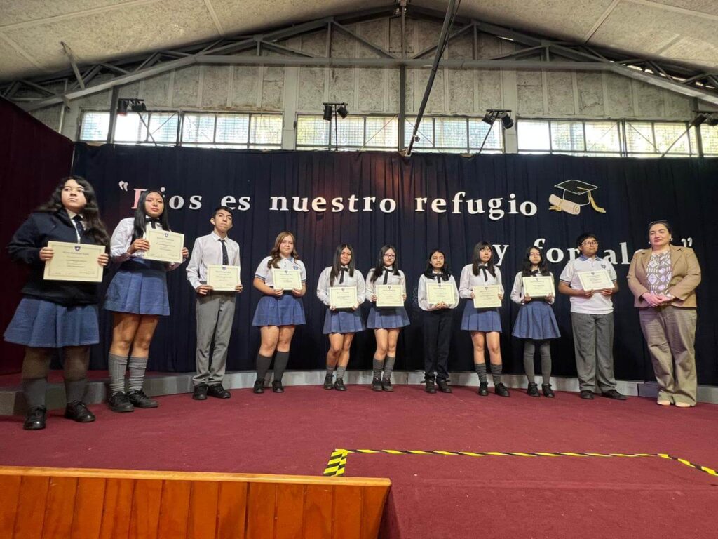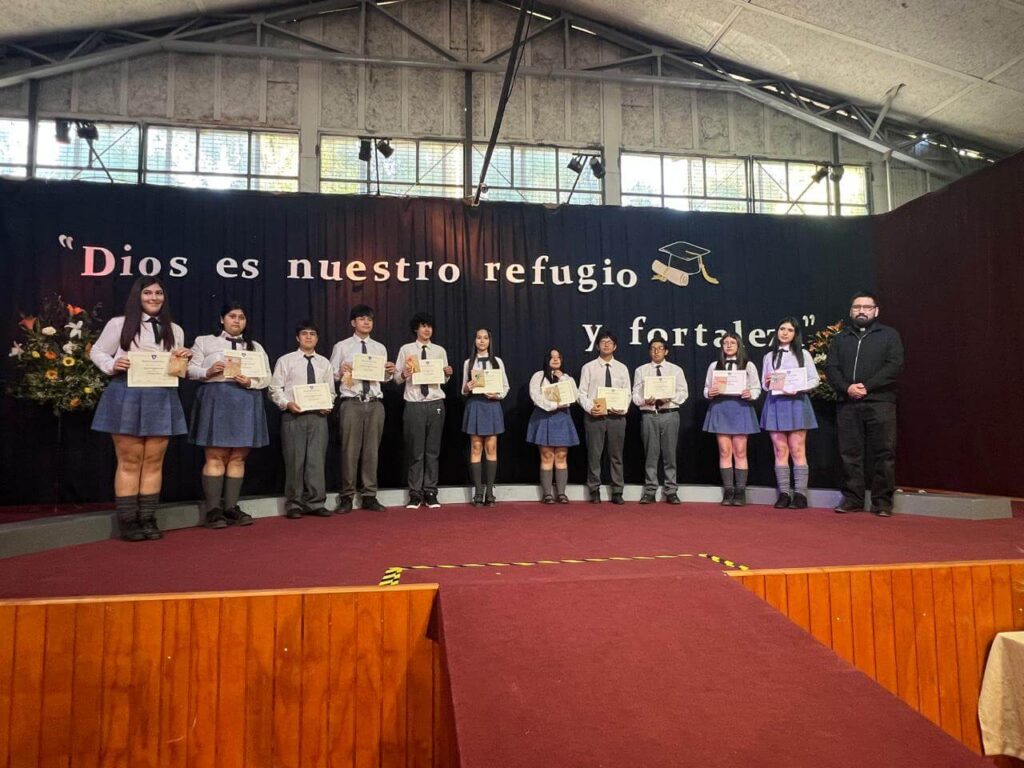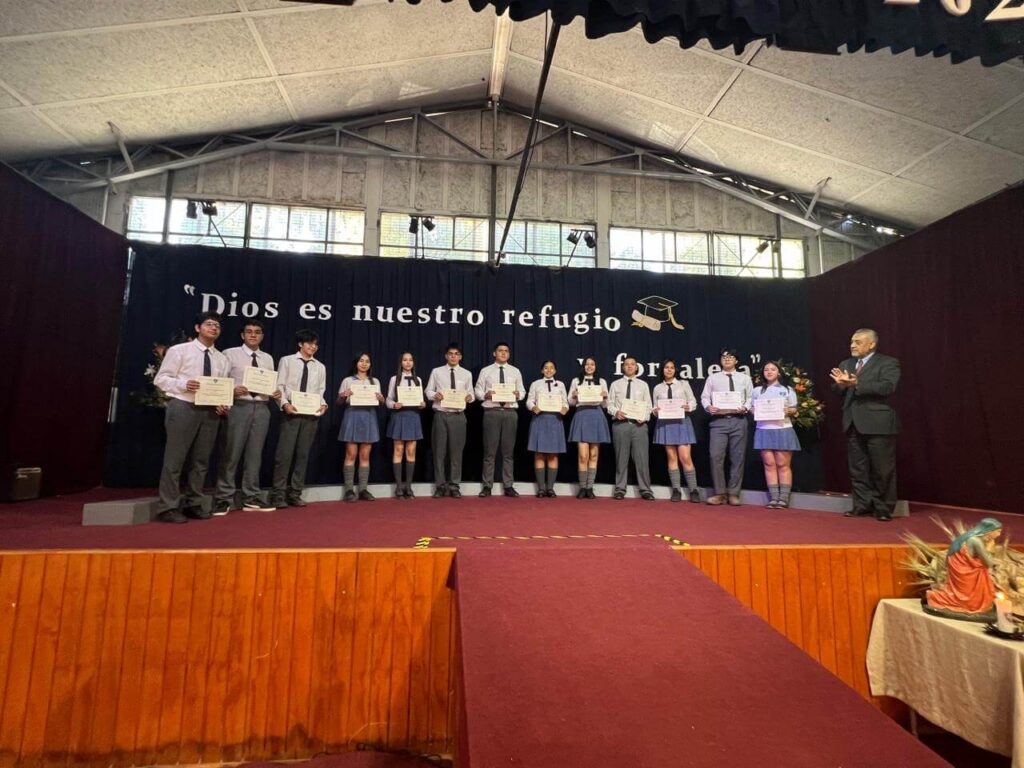 En el marco del tiempo litúrgico de Adviento, nuestro colegio celebró un significativo acto de premiación dirigido a los estudiantes de Octavo Básico, Primero, Segundo y Tercero Medio. Este período de espera y preparación para la Navidad fue el contexto perfecto para reconocer el esfuerzo y el compromiso de los jóvenes, destacando su contribución a la vida escolar. La ceremonia, además de ser un espacio de celebración, invitó a la reflexión sobre los valores de esperanza que encarnan estos días.