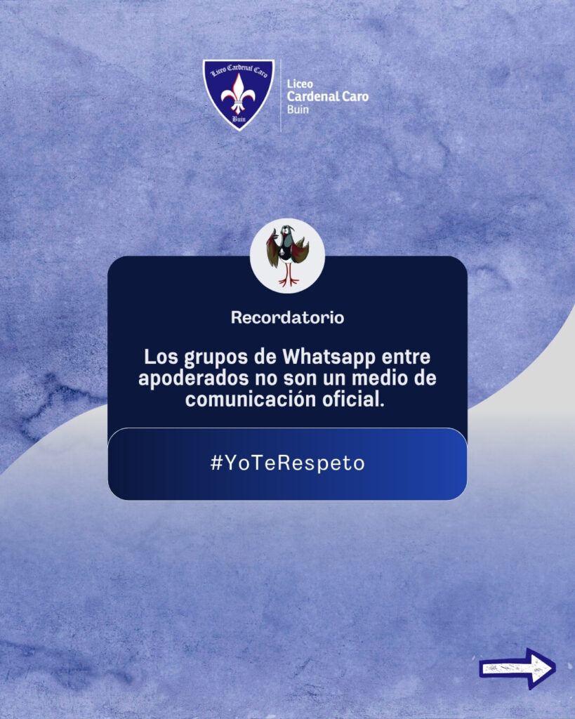 Estimados padres y/o apoderados, les recordamos estas tres importantes ideas sobre el uso de los grupos de WhatsApp. De todos depende seguir construyendo una comunidad educativa respetuosa: