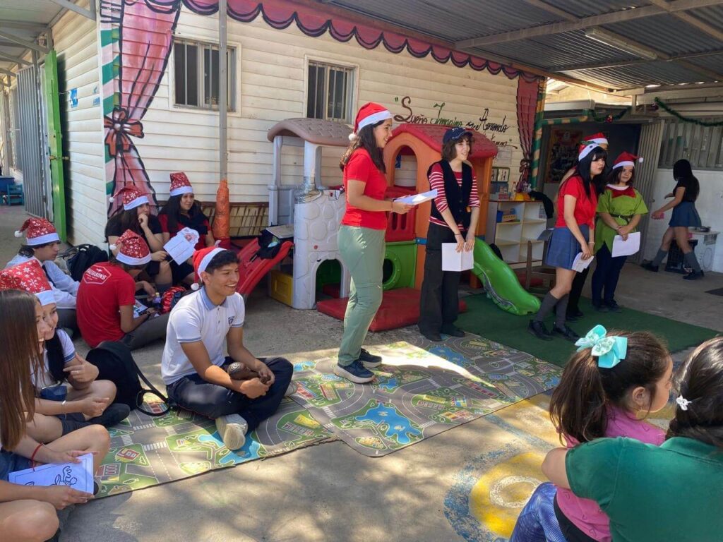 El jueves 04 de diciembre, un grupo de estudiantes de Tercero Medio del curso Lectura y Escritura Especializada, llevó a cabo una emotiva visita al Jardín Integra Granito de Arena, ubicado en el sector de Nuevo Buin. Acompañados por su profesora Paola Saavedra, los jóvenes compartieron una jornada llena de alegría y espíritu navideño con los niños del jardín infantil.